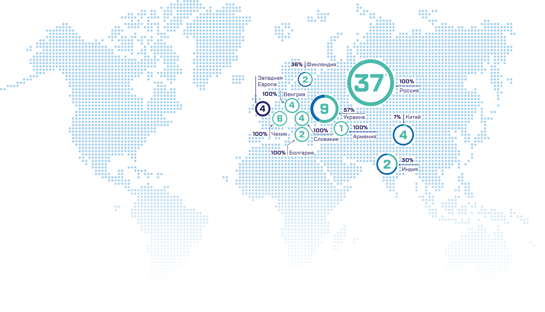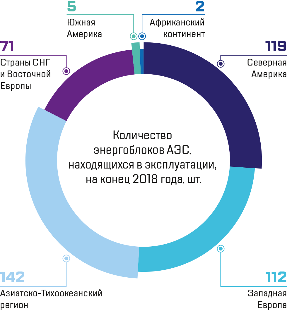 По данным МАГАТЭ PRIS на конец 2018 года в мире эксплуатируются 451 энергоблок АЭС, 37* из которых расположены на территории Российской Федерации. Топливом российского производства обеспечиваются