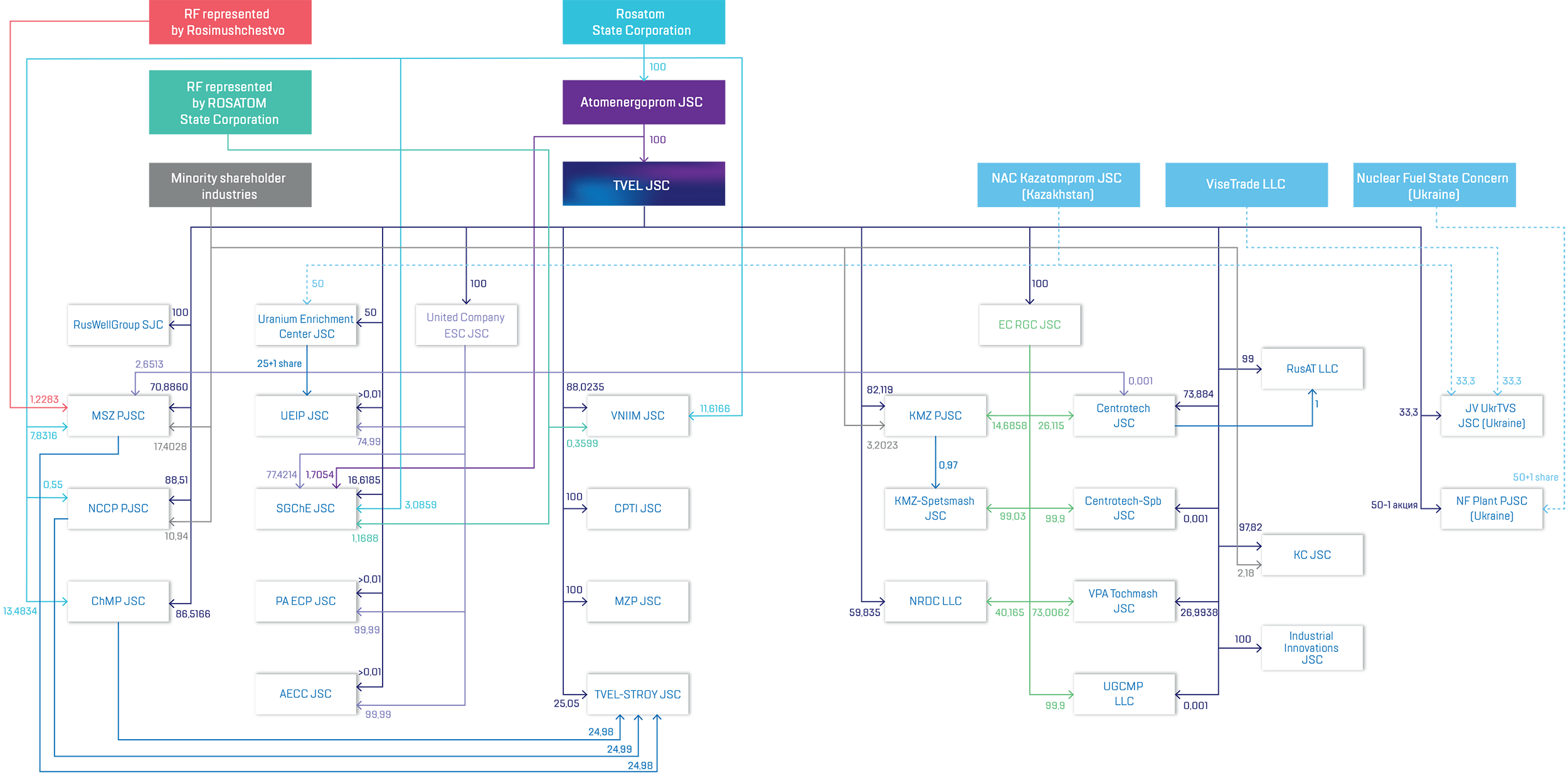“Atomic Energy Power Corporation” Joint Stock Company (Atomenergoprom JSC) is the owner of 100% of voting shares of TVEL Joint-Stock Company.