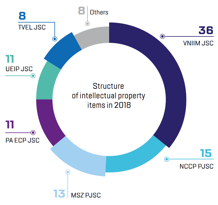 As of the end of 2018 TVEL Fuel Company holds 1.774 items of intellectual property. The objects protected by the law include inventions, utility models, production secrets (knowhow), software for electronic computing machines, databases, trademarks and industrial designs.