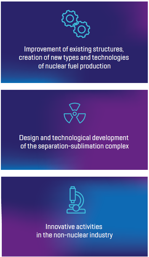 - implementation of strategic projects in the area of creation and adoption of new types of nuclear products, gas centrifuges, and improvement of existing productions and technologies, including conversion and enrichment;