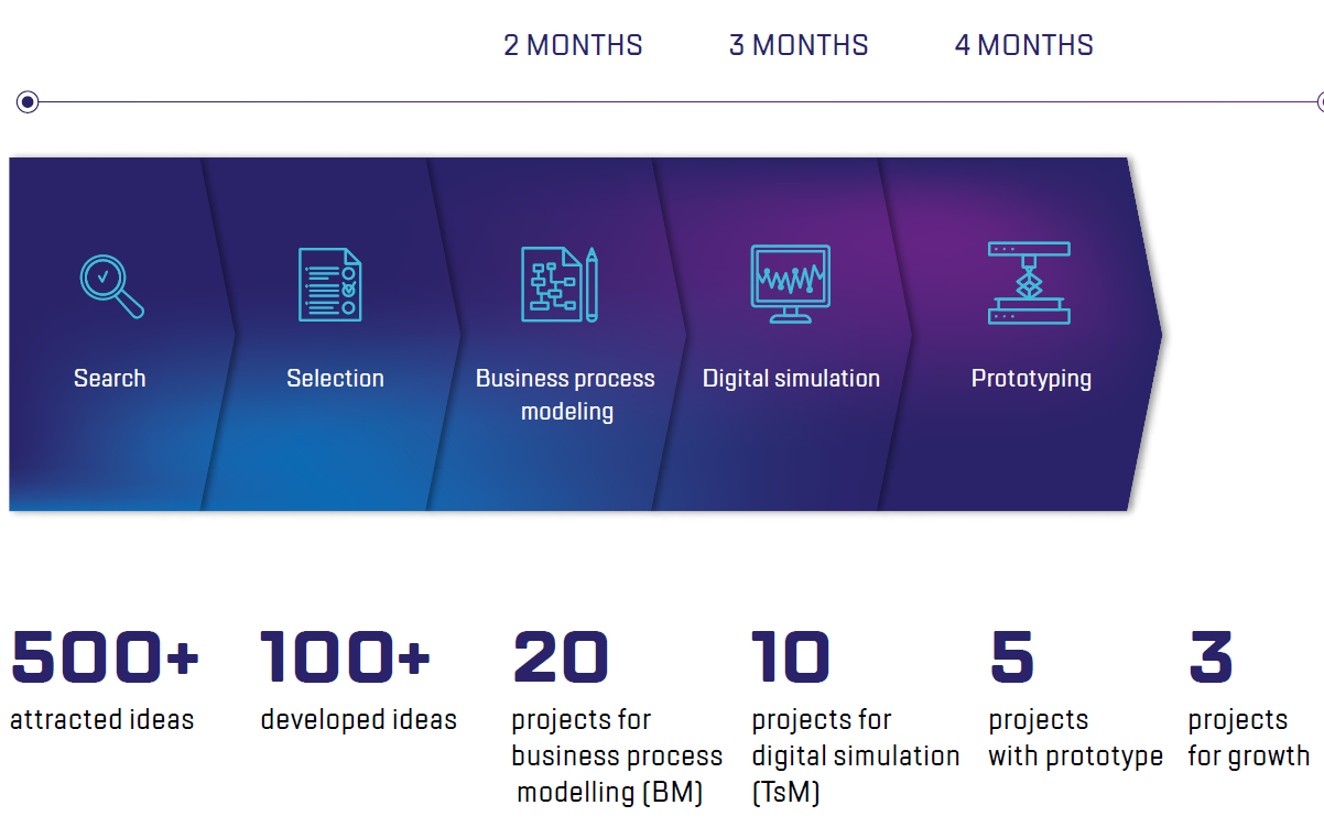 Following the results of the pilot cycle of businessacceleration, volume of client agreement amounted to more than RUB 3 bln, confirmed proceeds on the methods of TVEL JSC business-accelerator is estimated almost to RUB 300 mln, and nearly RUB 150 mln of investment money budgeted for the projects prior to acceleration program were saved on creation of products prototypes.